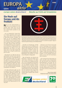 Die neue Ausgabe von Europa aktiv mit einem Geleitwort unseres Präsidenten Rainer Wieland steht ganz im Zeichen des 70. Jubiläums der Europa-Union Deutschland. Begeben Sie sich auf eine spannende Zeitreise durch die Geschichte der Europa-Union seit ihrer Gründung am 9. Dezember 1946. Auch auf den Seiten der Landesverbände finden Sie dieses Mal viele Sonderbeiträge zum Jubiläum.