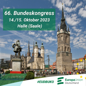 Am 14. und 15. Oktober findet in Halle (Saale) der 66. Bundeskongress der überparteilichen Europa-Union Deutschland statt. Unter dem Motto „Hoffnung statt Angst: Wir wählen Europa!“ kommen rund 200 Delegierte und Gäste in die Saalestadt, um sich auf die Europawahl 2024 vorzubereiten und ihre Führungsspitze neu zu wählen. Beim öffentlichen Auftakt am Samstag um 10:30 Uhr sprechen Europastaatssekretärin Simone Großner und der Vizepräsident des Europaparlaments und Präsident der Europa-Union Deutschland, Rainer Wieland.