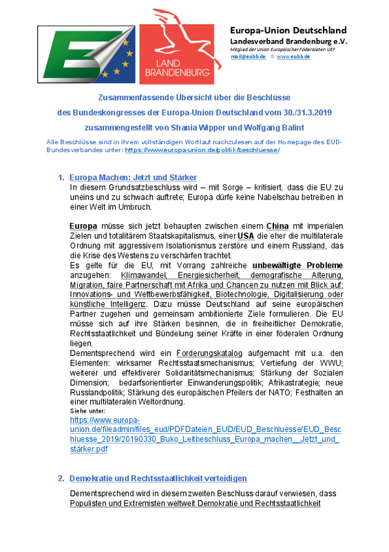 Extrakt des Bundeskongresses der Europa-Union Deutschland