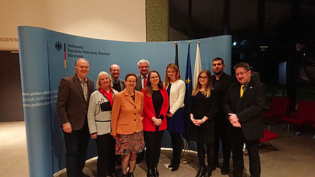 Am 29. November 2019 besuchte eine kleine Delegation aus Brandenburg, bestehend aus einigen Mitgliedern des Landesvorstands, in Begleitung, sowie junge Mitglieder von der Europa-Union Polska, Posen, die deutsche Botschaft in Warschau. Die dortige Besprechung mit dem Gesandten der Botschaft, Herrn Knut Abraham, verlief in freundlicher Atmosphäre und ermöglichte es, einige aktuelle Punkte der Zusammenarbeit Deutschlands mit Polen anzusprechen. Gleich zu Beginn erläuterte Herr Abraham, wie wichtig es sei, die Geschichte Polens besser zu kennen, um das Land und seine Haltung zu politischen Themen einordnen zu können. Es wurde offen diskutiert über Sicherheitsaspekte, die aus Sicht Polens aktuell von besonderer Bedeutung sind, wie z.B. sein Verhältnis zur NATO. Auch das Thema Gaspipeline Nordstream II sowie EU-Rechtsstaatsverfahren bzw. Zuwanderung wurde nicht ausgespart. Als besonders gelungen stellte sich heraus, dass die jungen Mitglieder der Europa-Union Polska mit bei der Besprechung zugegen waren und sich wieder einmal zeigte, wie wichtig es ist, sich wechselseitig auszutauschen, um den jeweiligen Nachbarn besser verstehen zu können. Der Kontakt zur Europa-Union Polska aus Posen soll weiter ausgebaut werden, insbesondere mit Blick auf weitere Informationsaustausche und ein besseres, wechselseitiges Kennenlernen der jungen Generation.